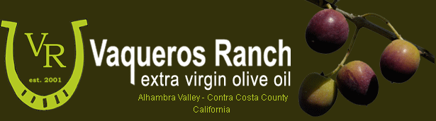 Vaqueros Olive Ranch is a small family farm producing exclusively Spanish Arbiquina olives for oil production. The orchard is designated organic and the olives are drip irrigated, and hand-picked and paddle shaken into nets. Care is taken to press the olives directly following the harvest to guarantee the freshness of the product. Typically the oil is non-filtered, bottled, and designated Extra Virgin Oil. Each crop is dated to assure a fresh product. Numerous gourmet restaurants in the Bay Area have purchased our oil for use on their menu or in food preparation. We promote and support the Buy Local, Buy Fresh philosophy.